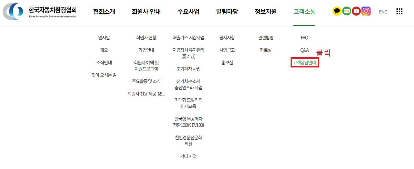 사이트 접속 후 우측 상단 고객소통 ---> 고객상담안내 클릭