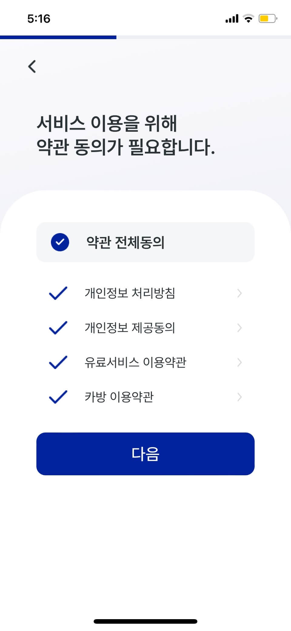 1.카방 어플 설치 후 전반 화면 스킵 후 시작 하기 ,동의 하기 세번째 화면 하단 이전 신청 클릭v